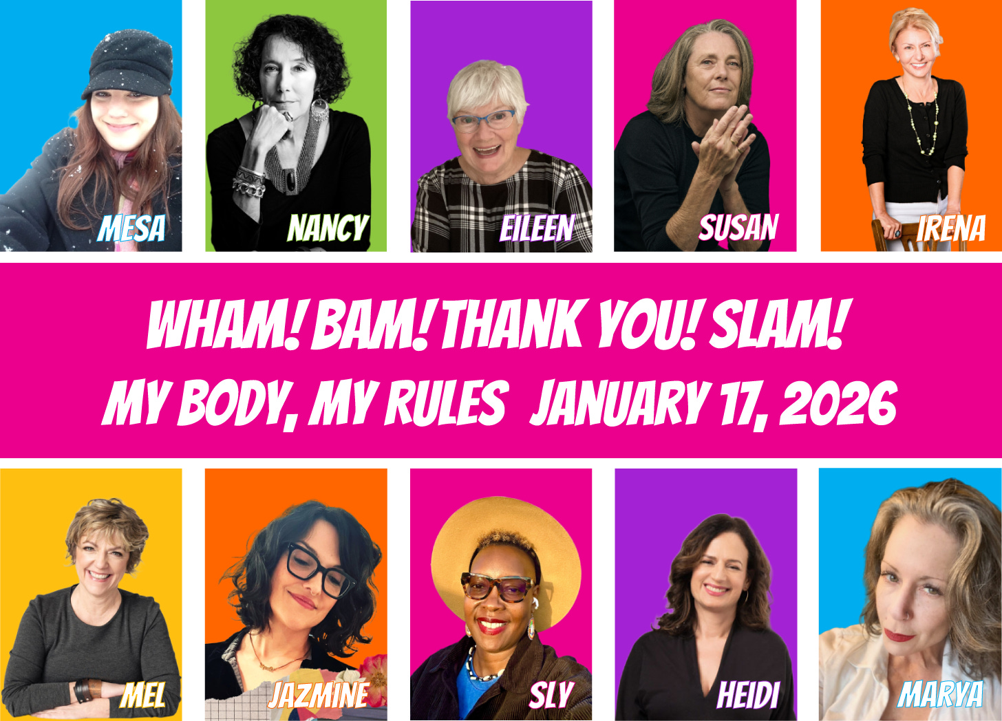 Wham! Bam! Thank You! Slam! is a space for women storytellers and others who don’t identify as male to come tell stories. It’s a space for us to share our lives with others. To share all the feelings. The joy, the laughter, the outrage, the astonishment, the grief.