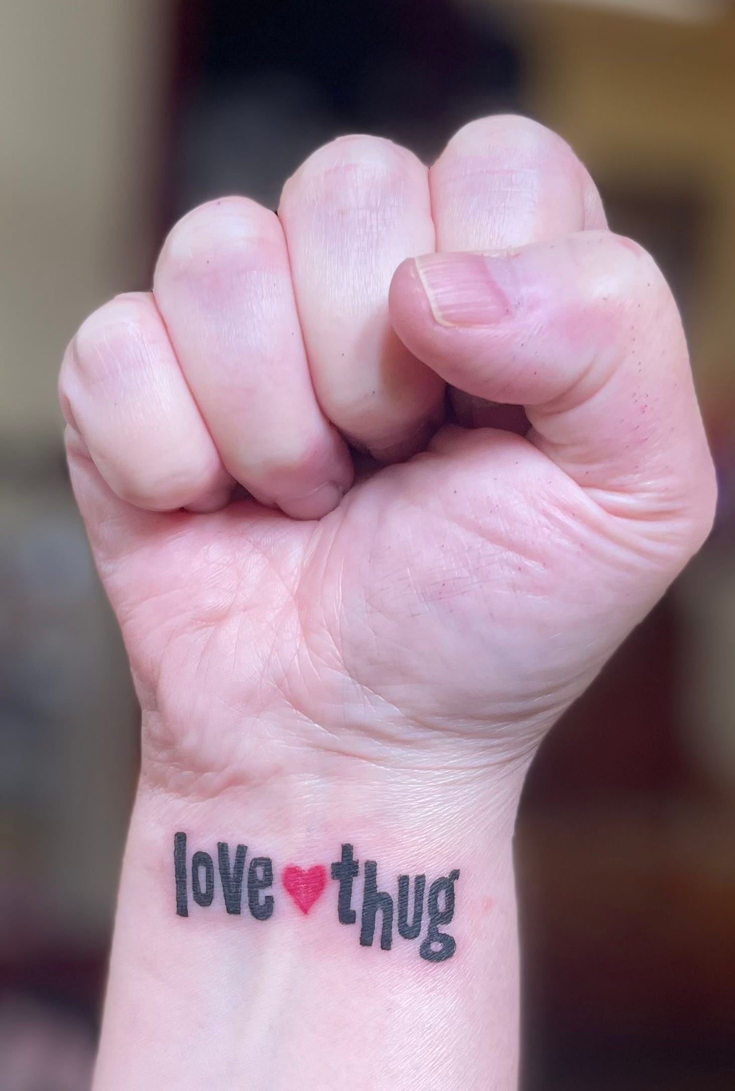 I’m dipping my toes in the love pond. I’m going to sit on the metaphorical grass––it’s a metaphor, because if you know me, you know I AM NOT OUTDOORSY––and I’m going to watch the ripples in that pond radiate out. I’m taking my anger and my love, and becoming a thug. Not the kind of thug that may come to mind when you hear that word. Because I’m a special brand of thug. A gangster of the oddest sort.