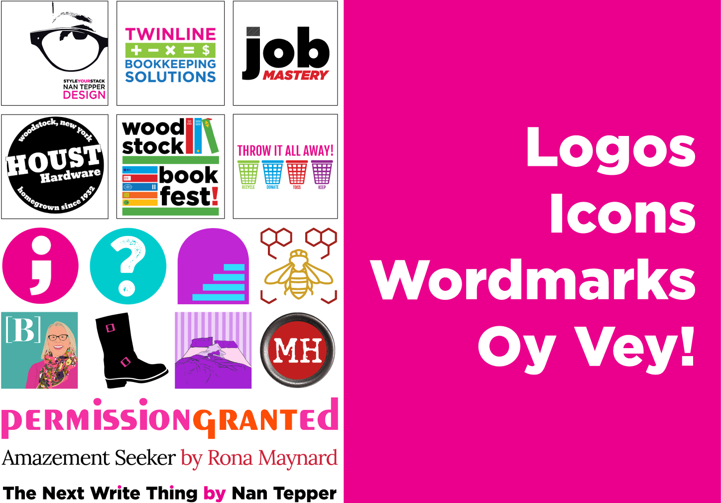 Here are some logos I’ve created over the past 15 years. I can design one for you, for your Welcome page or your About page. It’s more involved than your icon and can serve a purpose by telling your reader more about you. But it can’t be used for Substack’s idea of what a logo is…